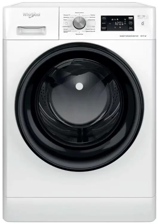 Прально-сушильна машина Whirlpool фронтальна, 9(7)кг, 1600, A+, 60см, дисплей, пара, інвертор, білий
