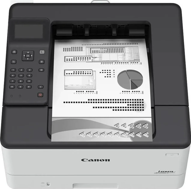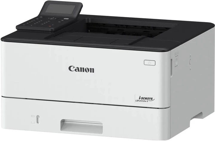 Canon i-SENSYS LBP243dw II (7187C013) — компактний чорно-білий лазерний принтер А4 з Wi-Fi, швидкістю до 36 стор/хв і часом виходу першої сторінки ~5 с. Автоматичний двосторонній друк, роздільна здатність до 1200×1200 dpi, касета на 250 аркушів + 100-аркушевий багатоцільовий лоток. Підтримка мобільного друку (Canon PRINT Business, AirPrint, Mopria), безпечний друк з PIN-кодом, 5-рядковий РК-дисплей. У комплекті стартовий картридж на 1500 сторінок. Надійний вибір для малого офісу, гібридної роботи або дому з високою продуктивністю.
