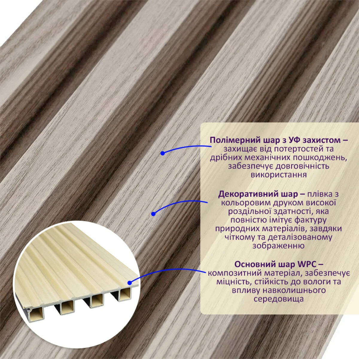 Рейка декоративна WPC стінова 3000х160х23мм Сірий горіх SW-00001856