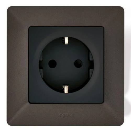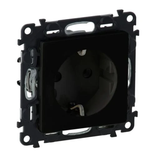 Розетка 2К+З Schuko Legrand Valena Life, 16А, 250V, зі шторками, автоматичні клеми, матовий чорний