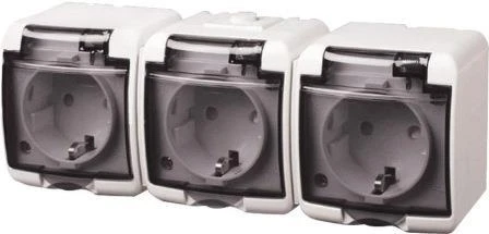 Розетка ETI, 3хSchuko RHE-3sd (димчаста кришка, IP54)