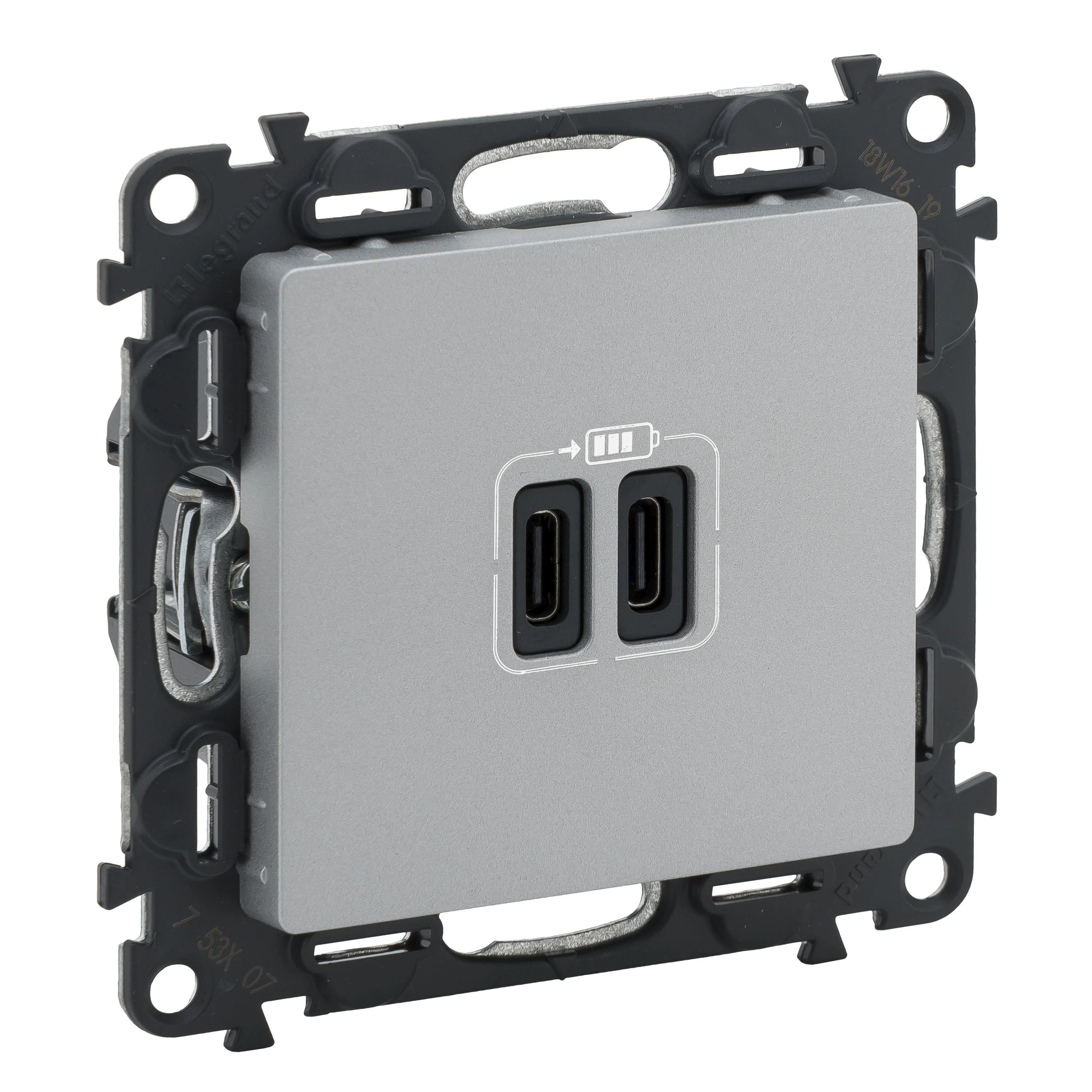 Розетка USB-С+USB-С Legrand Valena LIFE, 3А, 5V, алюміній