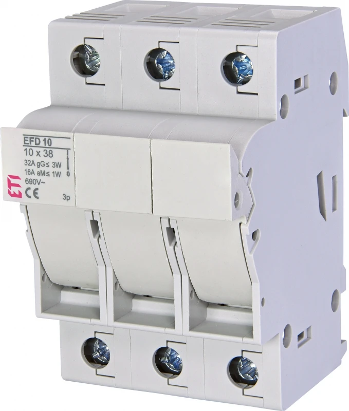 Роз'єднувач 2540004 ETI EFD 10 3p 690V. Роз'єднувачі EFD виконують функцію утримувача запобіжників CH і застосовуються для комутації електричних кіл з струмом до 100А. Конструкція механізму роз'єднувачів EFD дозволяє здійснювати видимий розрив колу.
