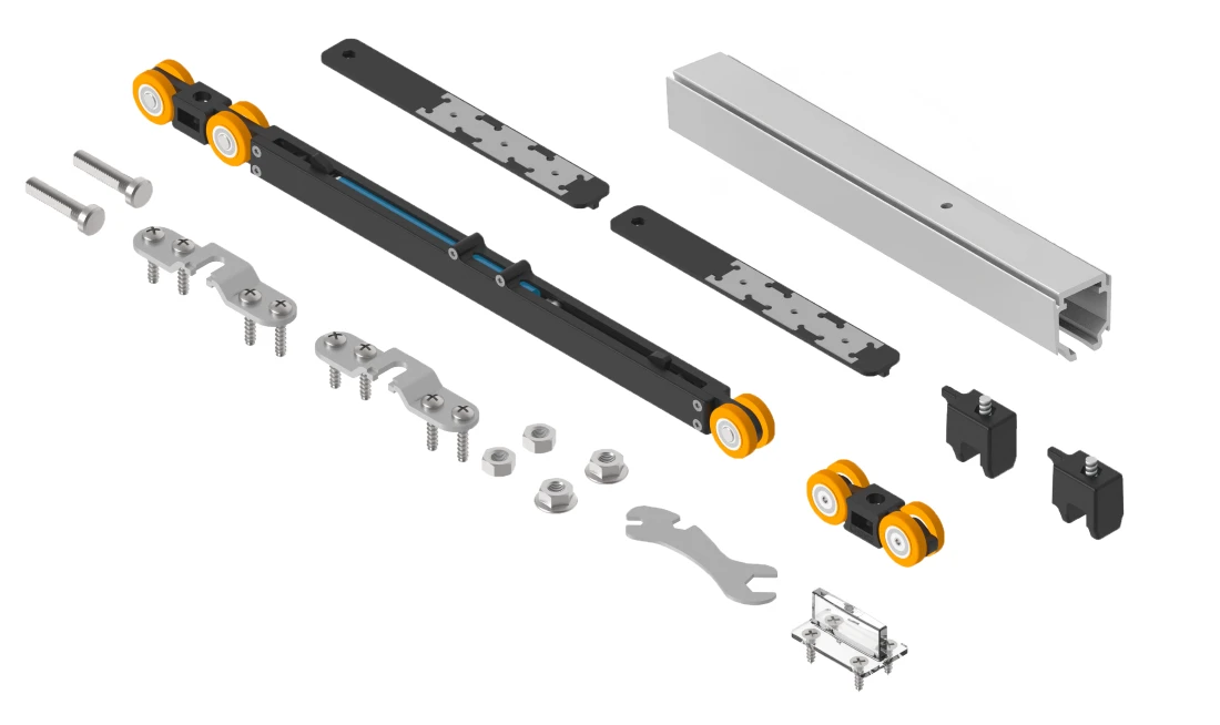 Розсувна система SAHECO SF-P70 з подвійним дотягувачем для дерев'яних дверей (Стельове кріплення: до
