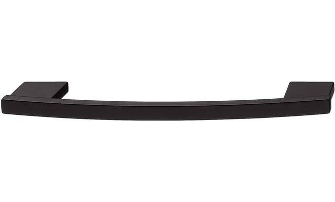 Меблева ручка чорного кольору типу скоба, виготовлена зі сплаву цамак. Підходить для дерев’яних дверей.