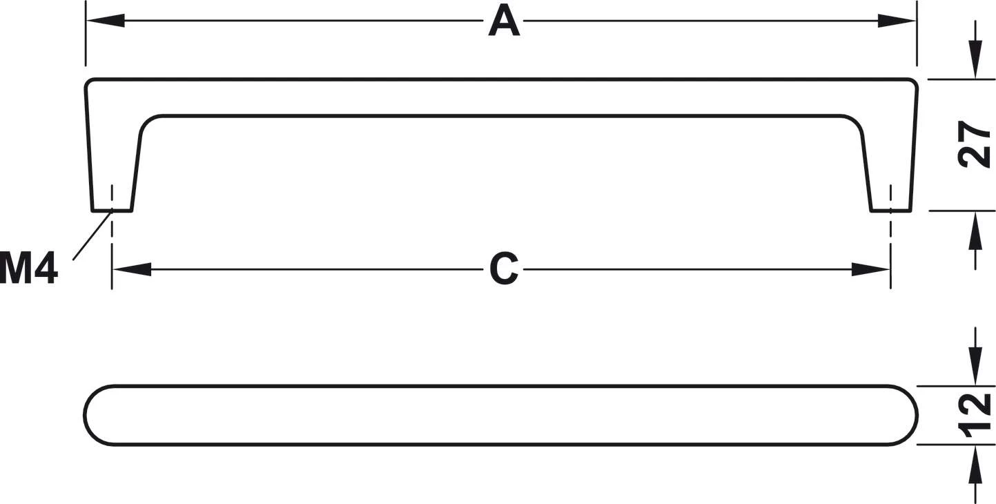 Меблева ручка Hafele 10669131, цамак, чорний матовий, 128мм