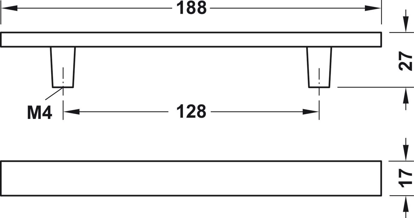 Меблева ручка Hafele 10204617, цамак, сталь, 188х27мм