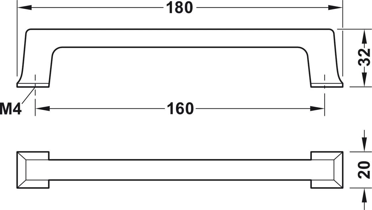 Меблева ручка Hafele 11029270, цамак, титан, 180x32мм