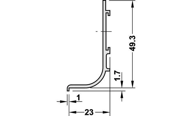 Профільна ручка-планка для лицьових панелей без ручок. Для монтажу між робочою плитою і, розташованою під нею, передньою панеллю. Виготовлена з алюмінію, поверхня - чорного кольору.