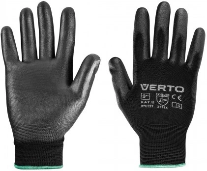 Рукавички робочі Verto, поліуретанове покриття, р.9, чорний