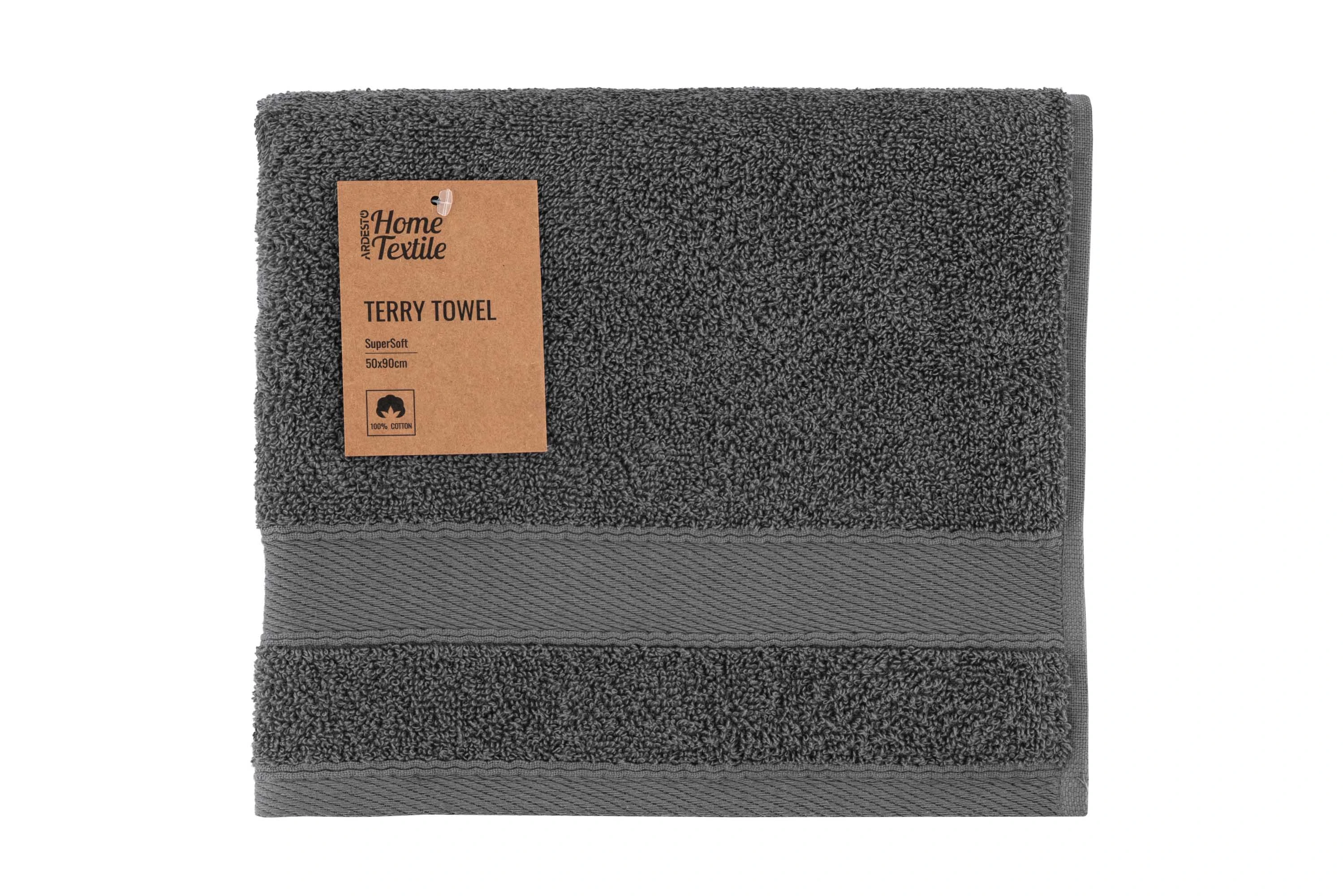 Рушник махровий ARDESTO SuperSoft, 50х90см, 100% бавовна, сірий темний