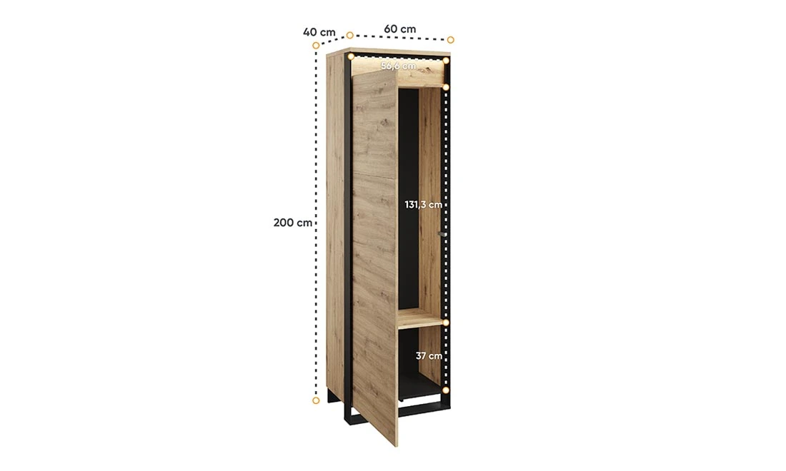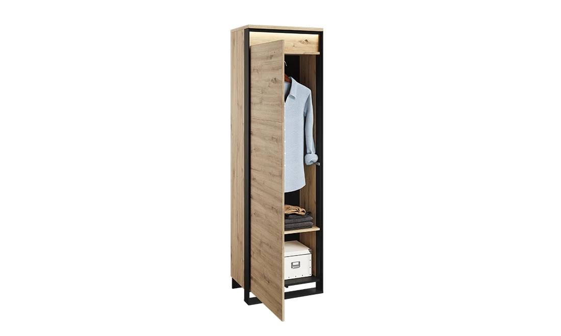 Шафа 1-дв Квант дуб артизан/чорний з підсвіткою