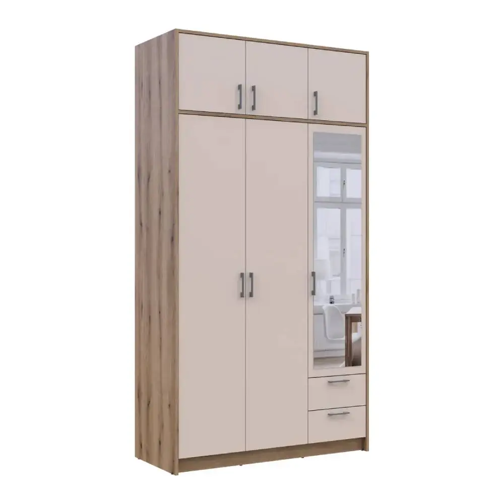 Шафа для одягу Doros Ронді з антресоллю і дзеркалом Дуб Артизан/Кашемір 3ДСП 121х52х236 DRS-011679 (