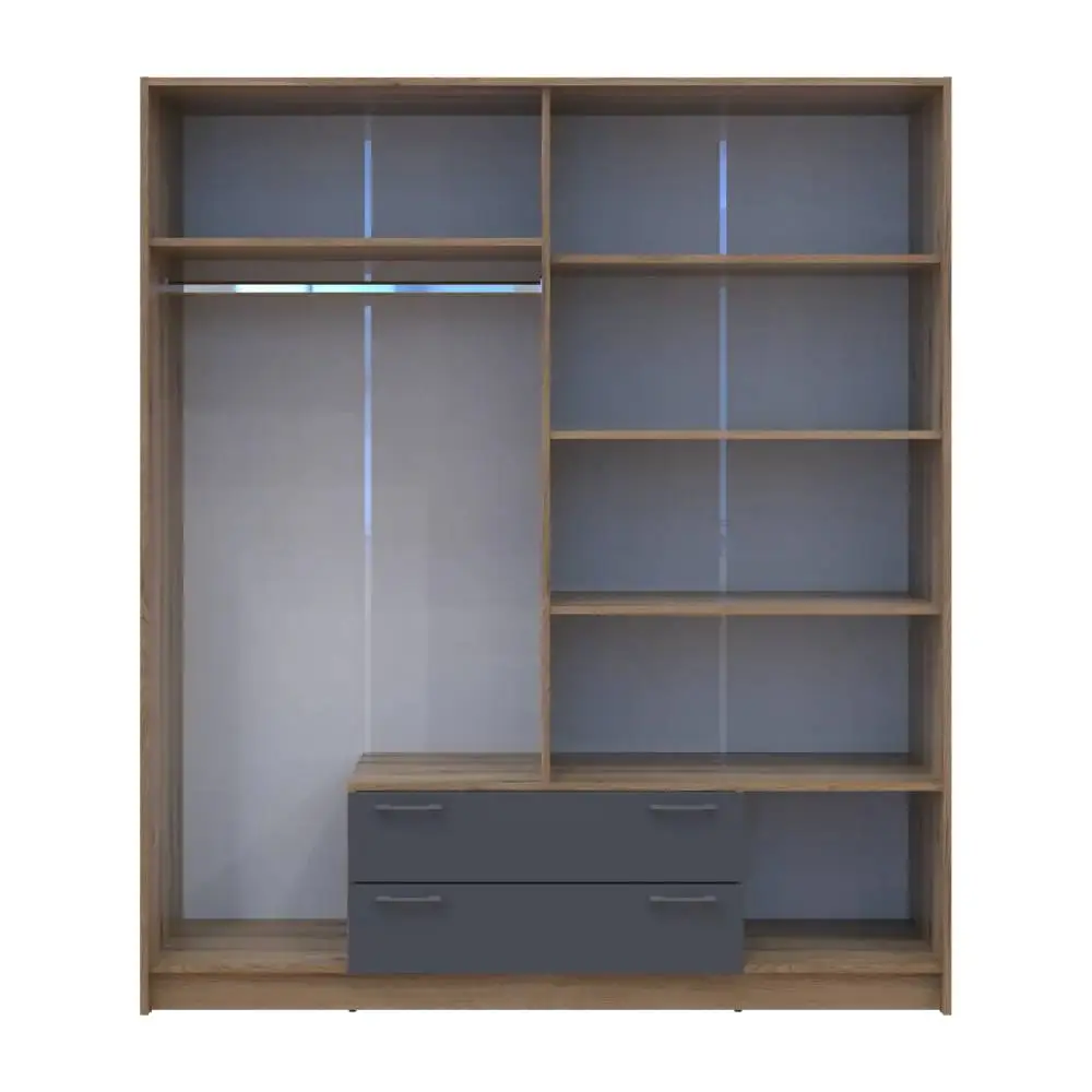 Відкрийте для себе ідеальне рішення для зберігання вашого одягу з шафою Doros Ронді. Ця стильна модель з дзеркалом у кольорі Дуб Артизан і Графіт не лише доповнить інтер'єр вашої кімнати, але й забезпечить максимальну зручність у використанні. Завдяки своїм розмірам 160х52х195 см, вона ідеально впишеться в будь-який простір, пропонуючи достатньо місця для вашого гардеробу.