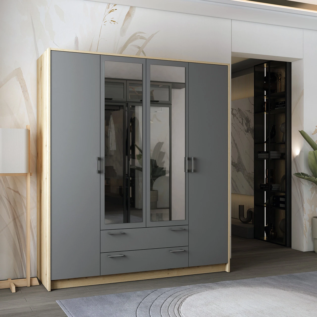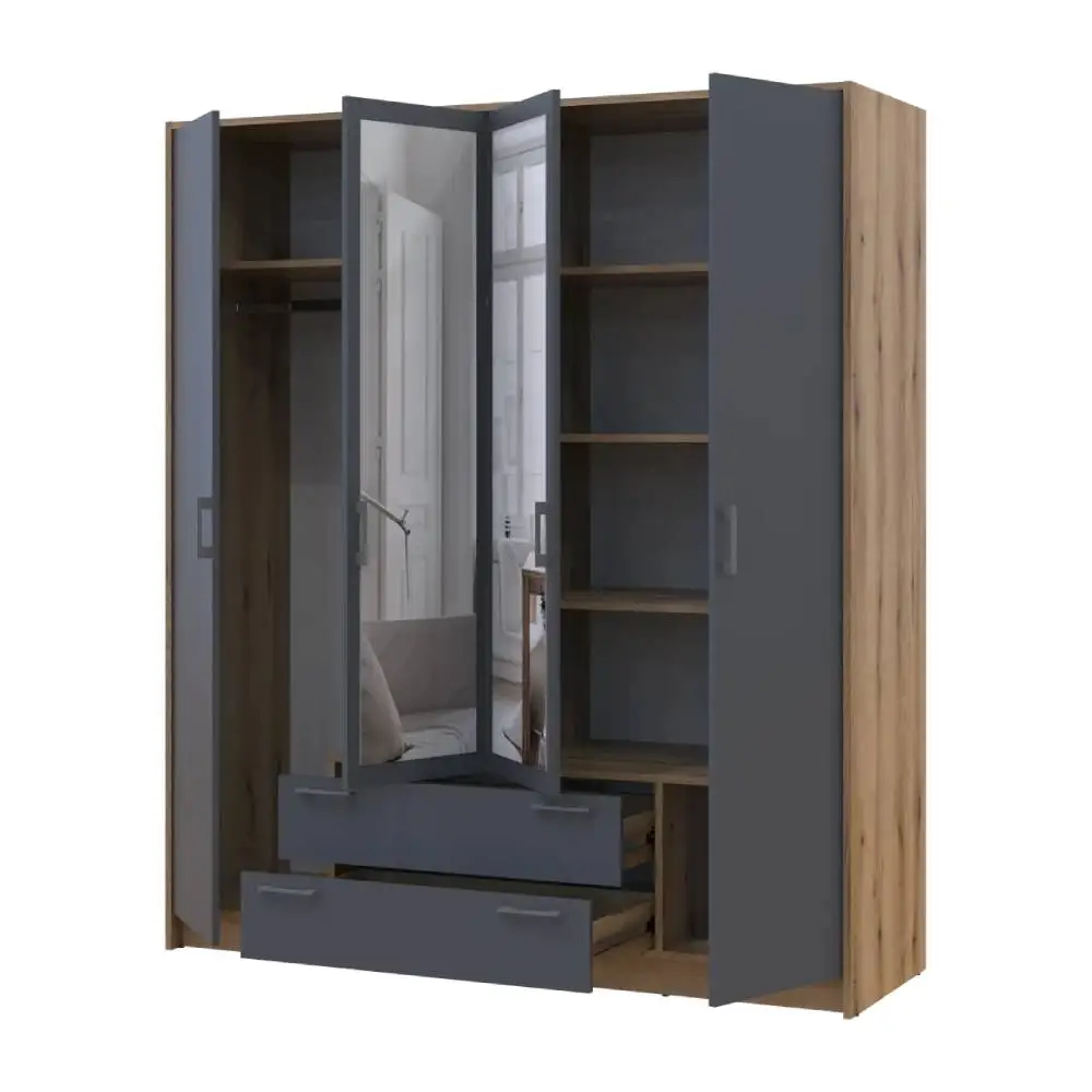 Шафа для одягу Doros Ронді з дзеркалом Дуб Артизан/Графіт 4ДСП 160х52х195 DRS-011671 (80737826)
