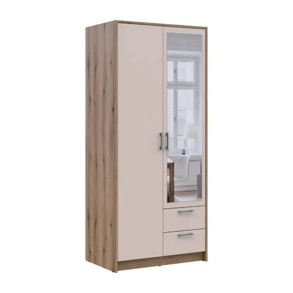 Шафа для одягу Doros Ронді - це ідеальне рішення для тих, хто цінує комфорт і естетику у своєму домі. Завдяки елегантному дизайну в кольорах Дуб Артизан та Кашемір, вона стане яскравим акцентом будь-якої спальні або передпокою. Дзеркало, вмонтоване в шафу, не лише додає візуального простору, але й дозволяє зручно перевірити свій вигляд перед виходом.