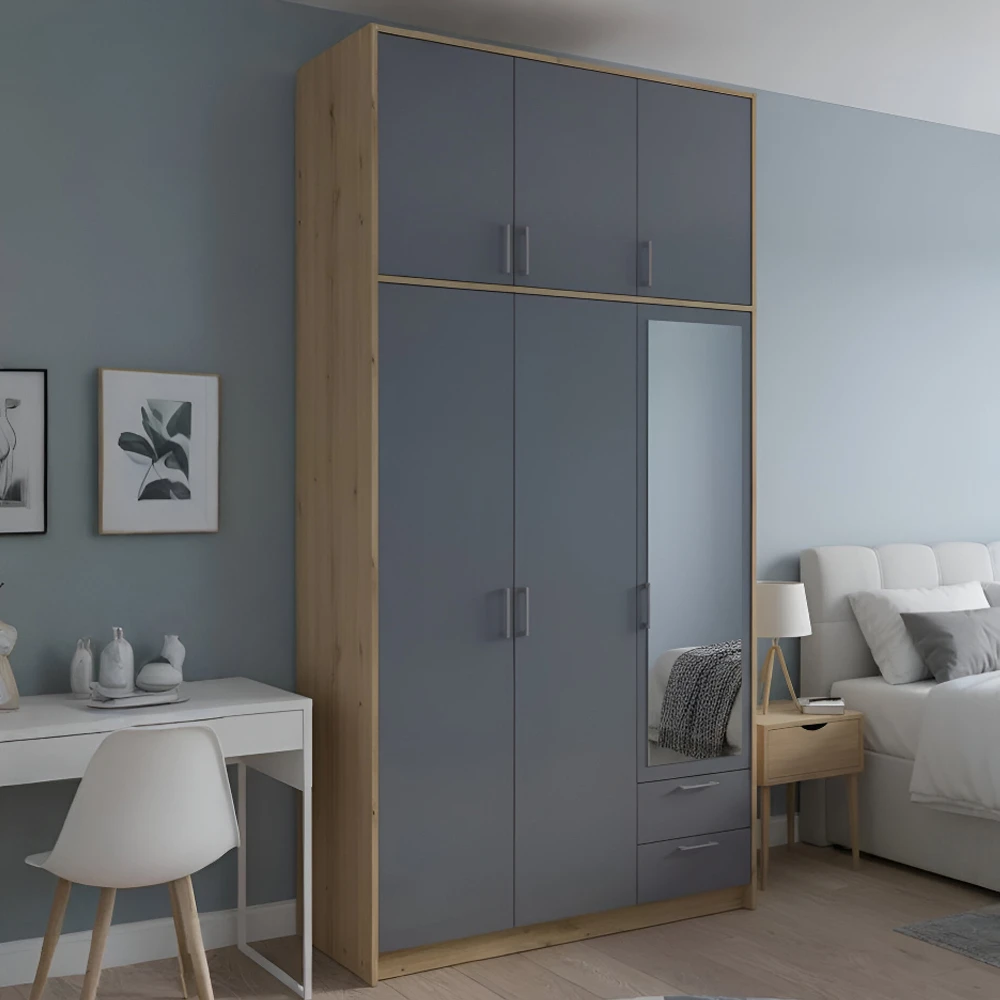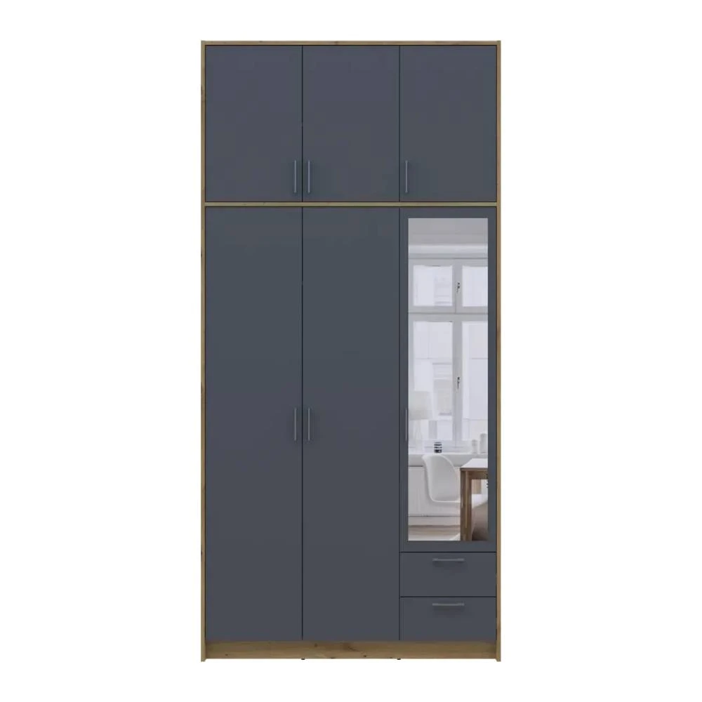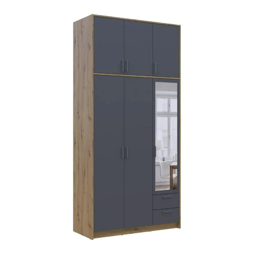Шафа для одягу Doros Ронді з високою антресоллю і дзеркалом Дуб Артизан/Графіт 3 ДСП 121х52х260 (DRS