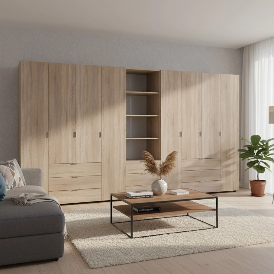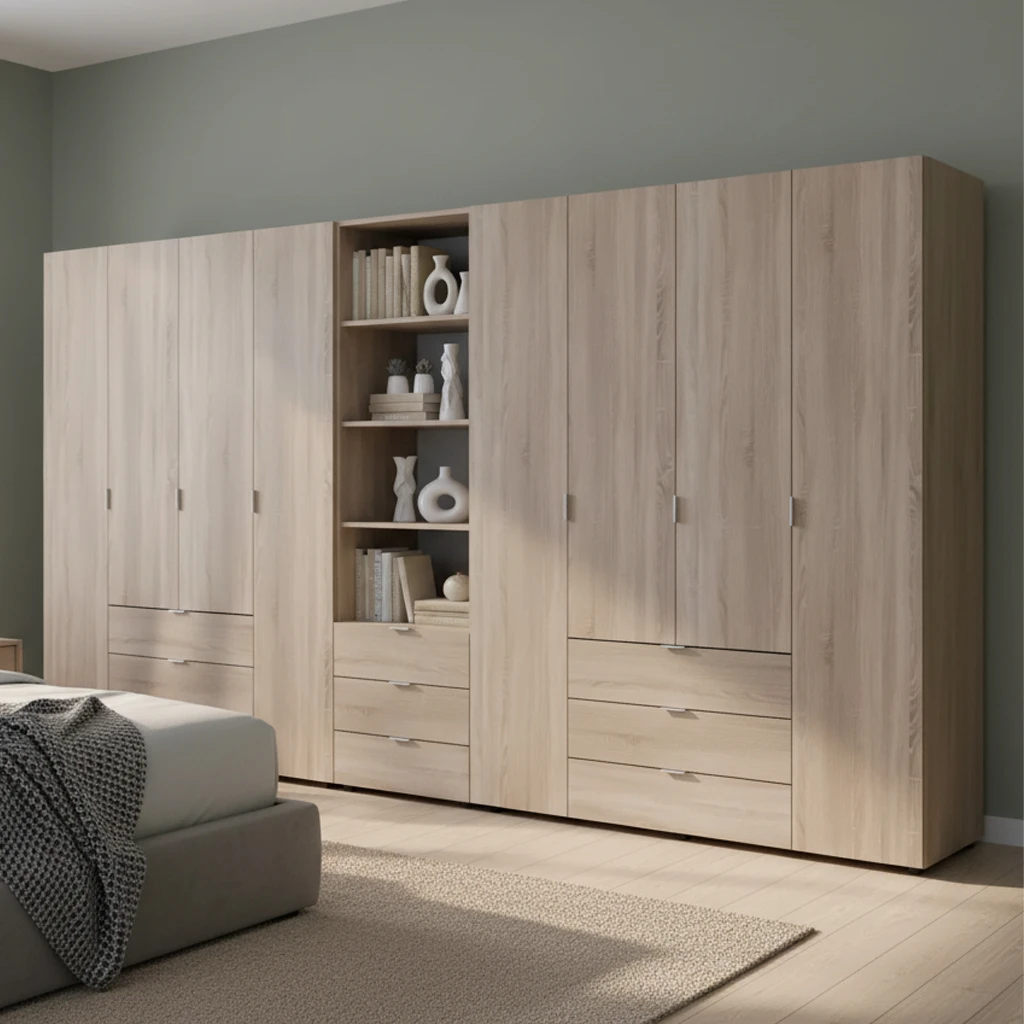 Шафа для одягу Гелар Doros: стиль та функціональністьВаша спальня заслуговує на найкраще, і шафа для одягу Гелар Doros стане ідеальним доповненням до інтер'єру. Виготовлена з якісного ДСП, вона поєднує в собі сучасний дизайн та практичність. Колір дуб сонома надає елегантного вигляду, що легко вписується в будь-який стиль оформлення.Завдяки продуманій конструкції, шафа має зручний пенал і достатньо місця для зберігання всього вашого одягу. Розміри 370х49.5х203.4 см дозволяють ефективно використовувати простір навіть у невеликих кімнатах. Ви зможете без зусиль організувати свій гардероб, зберігати речі в порядку та знаходити те, що вам потрібно в будь-який момент.Не пропустіть можливість зробити свій дім більш комфортним і стильним! Шафа Гелар Doros – це не просто меблі, а інвестиція у ваш комфорт та затишок. Обирайте якість та елегантність, що підкреслить ваш індивідуальний стиль та зробить ваше життя простішим.