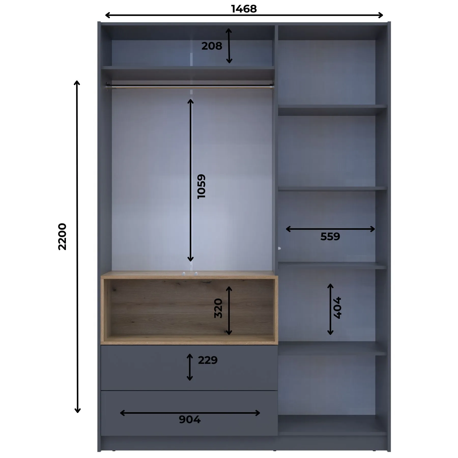 Шафа для одягу з нішою Doros Дейл 150х52х220 см Графіт/Дуб евок (DRS-011282)