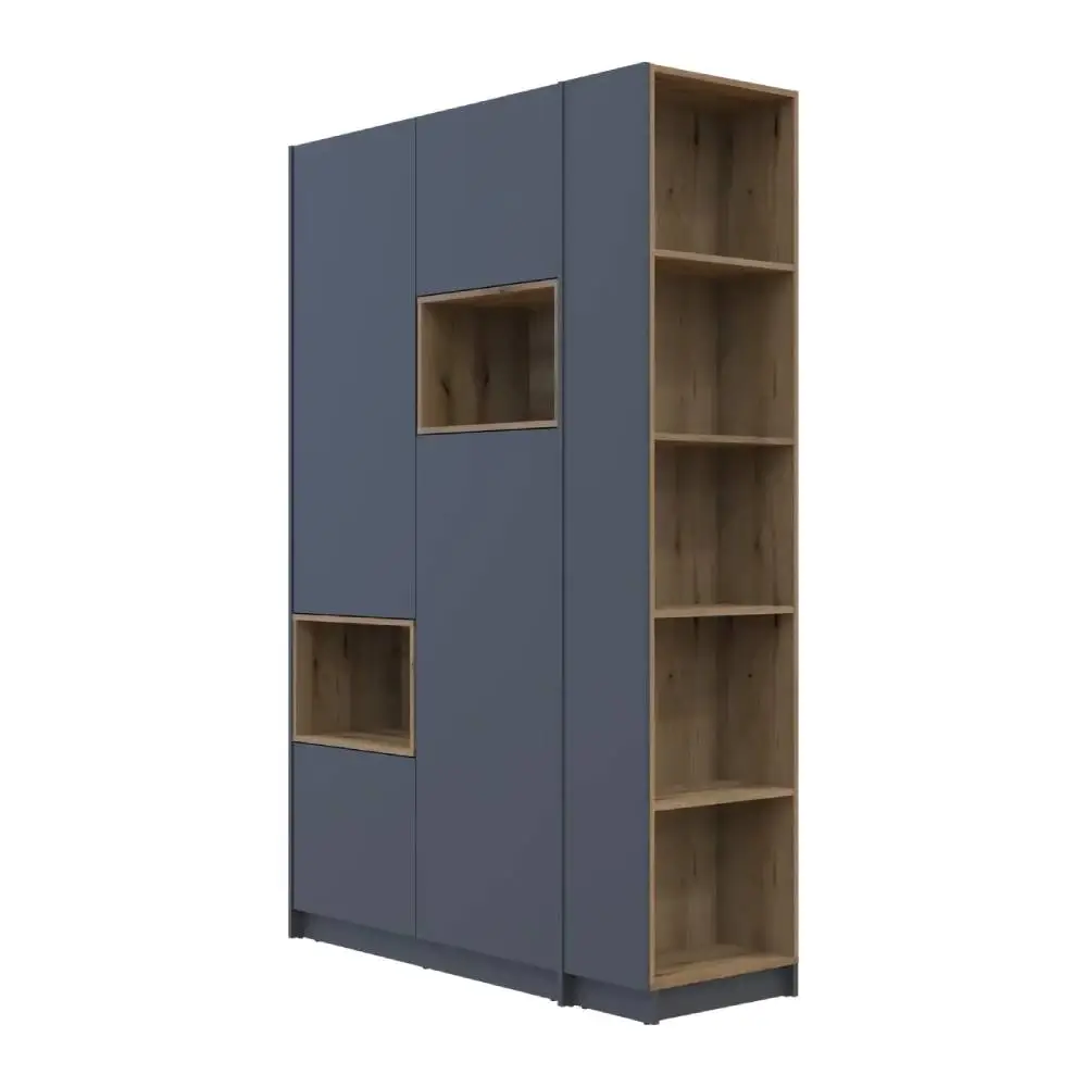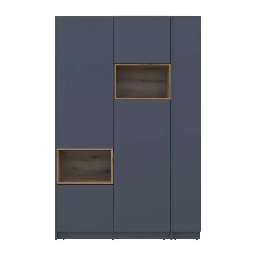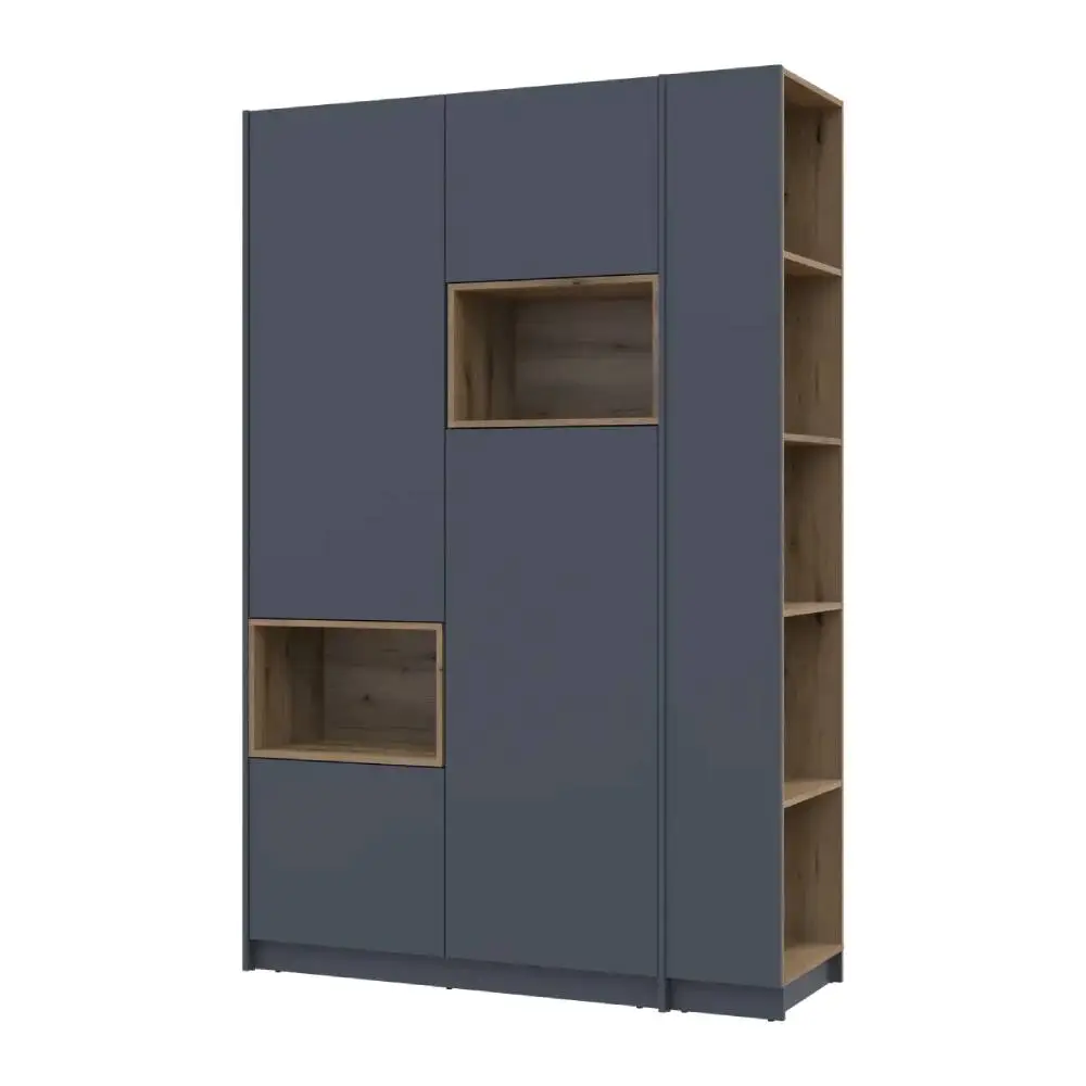 Шафа для одягу з нішою та етажеркою Doros Дейл - це ідеальне рішення для тих, хто цінує не лише естетику, але й практичність. Зроблена з високоякісного ДСП, вона поєднує в собі сучасний графітовий колір з елементами дуба Евок, що надає інтер'єру елегантності та стилю. Розміри 143.2х52х220 см забезпечують достатньо простору для зберігання одягу, взуття та аксесуарів, а також дозволяють раціонально використовувати площу вашої кімнати.