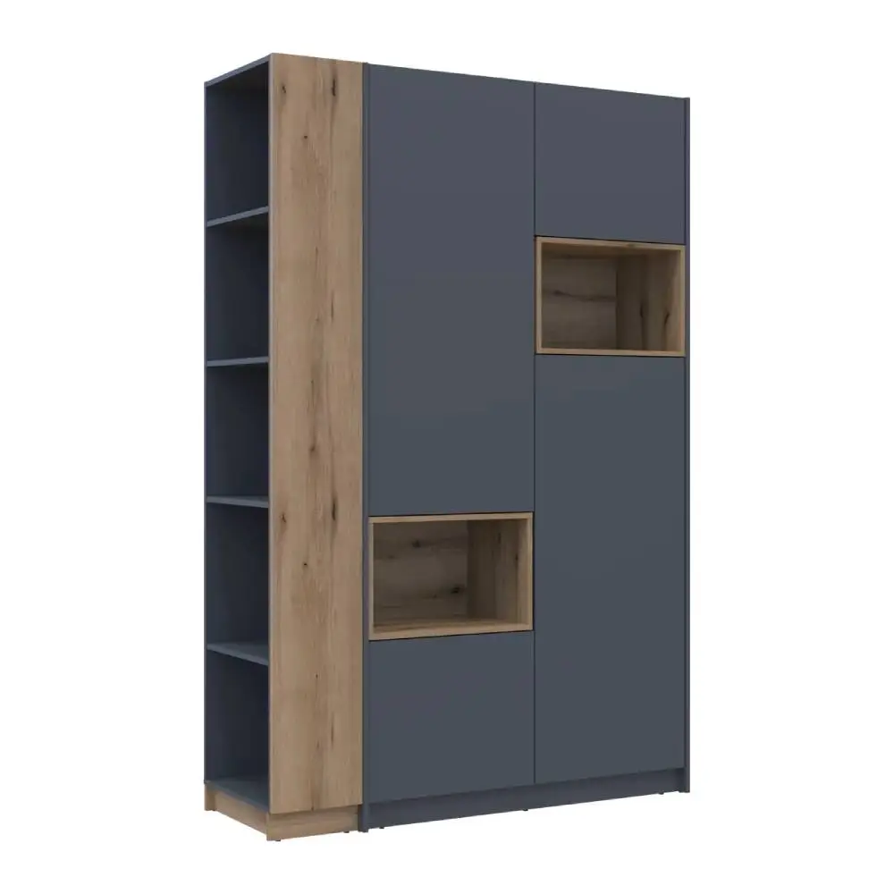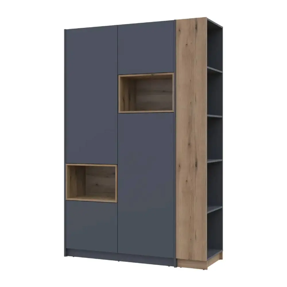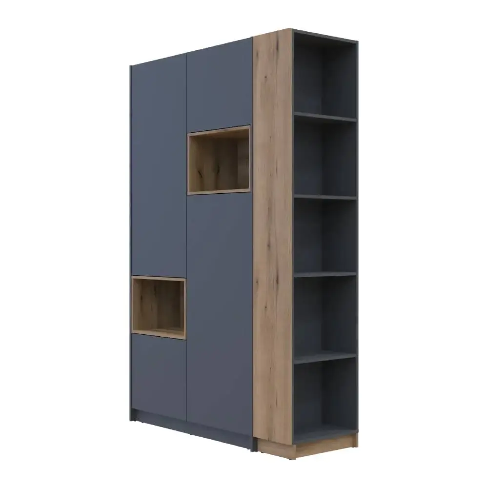 Шафа для одягу з нішою та етажеркою Doros Дейл стане незамінним елементом вашого дому. Її стильний дизайн у поєднанні графітового кольору та дуба Евок додасть сучасного вигляду будь-якому інтер'єру. Завдяки компактним розмірам 143.2х52х220 см, вона ідеально підійде для невеликих приміщень, забезпечуючи при цьому достатньо місця для зберігання одягу та аксесуарів.