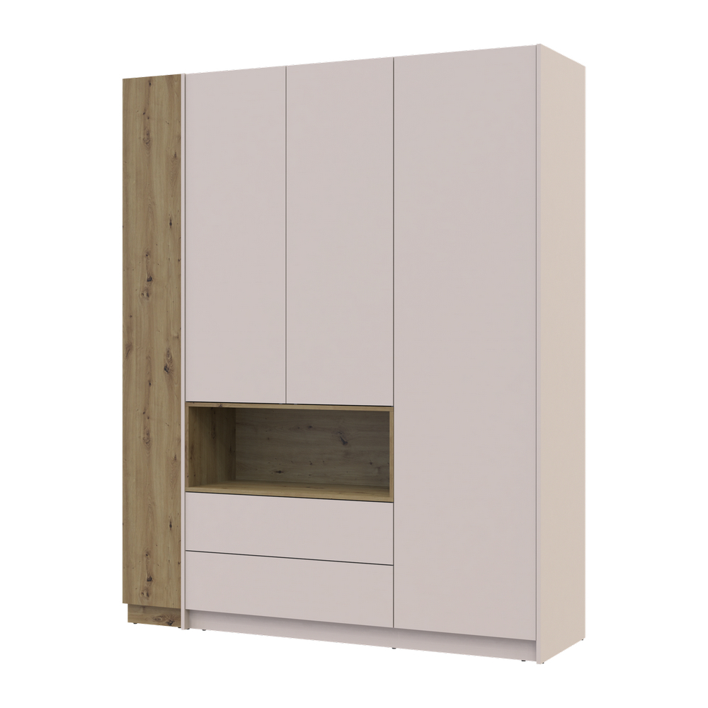 Шафа для одягу з нішою та етажеркою Doros Дейл у кольорі Кашемір/Дуб Артизан стане ідеальним доповненням до вашого інтер'єру. Її елегантний дизайн і практичні рішення дозволять вам організувати простір так, щоб усе було під рукою. Завдяки розмірам 178х52х220 см, вона підійде навіть для невеликих кімнат, надаючи вам можливість зберігати одяг, взуття та аксесуари в одному місці.