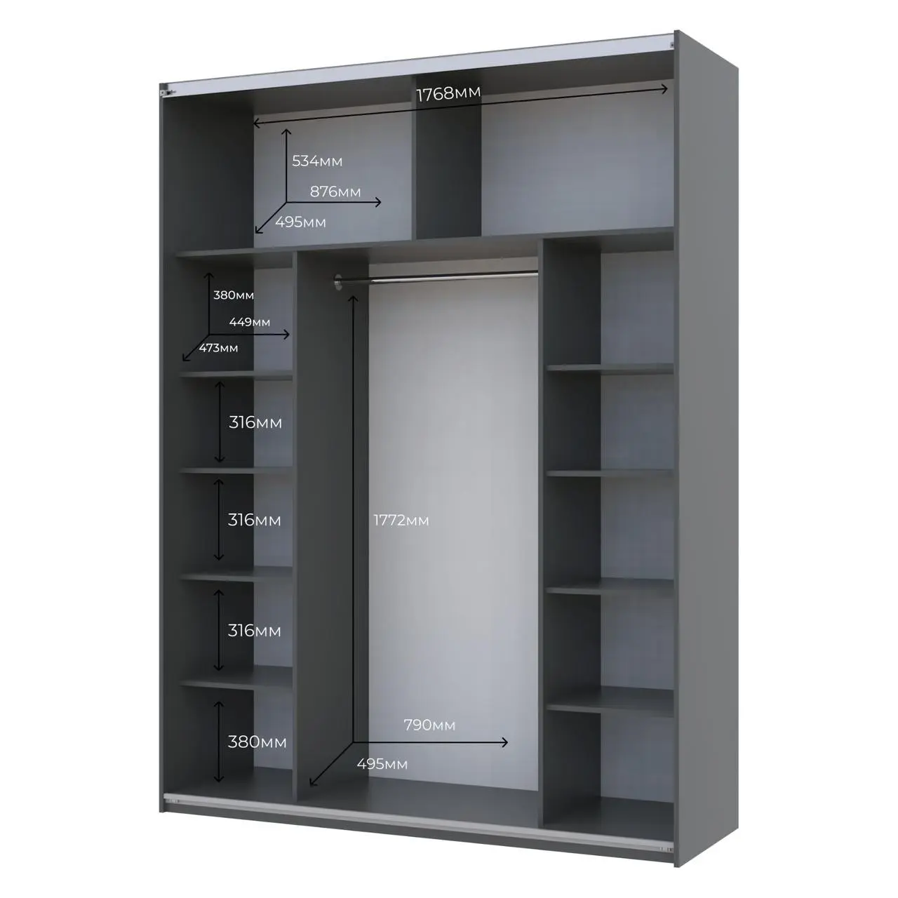 Завдяки своїм габаритам, ця шафа надає достатньо місця для зберігання одягу та аксесуарів, що робить її незамінною у кожному домі. Внутрішня організація дозволяє зручно розміщувати речі, зберігаючи порядок і легкий доступ до всього необхідного. Не втрачайте можливість оновити свій простір з шафою-купе Doros G-Caiser - ідеальним поєднанням стилю та функціональності!