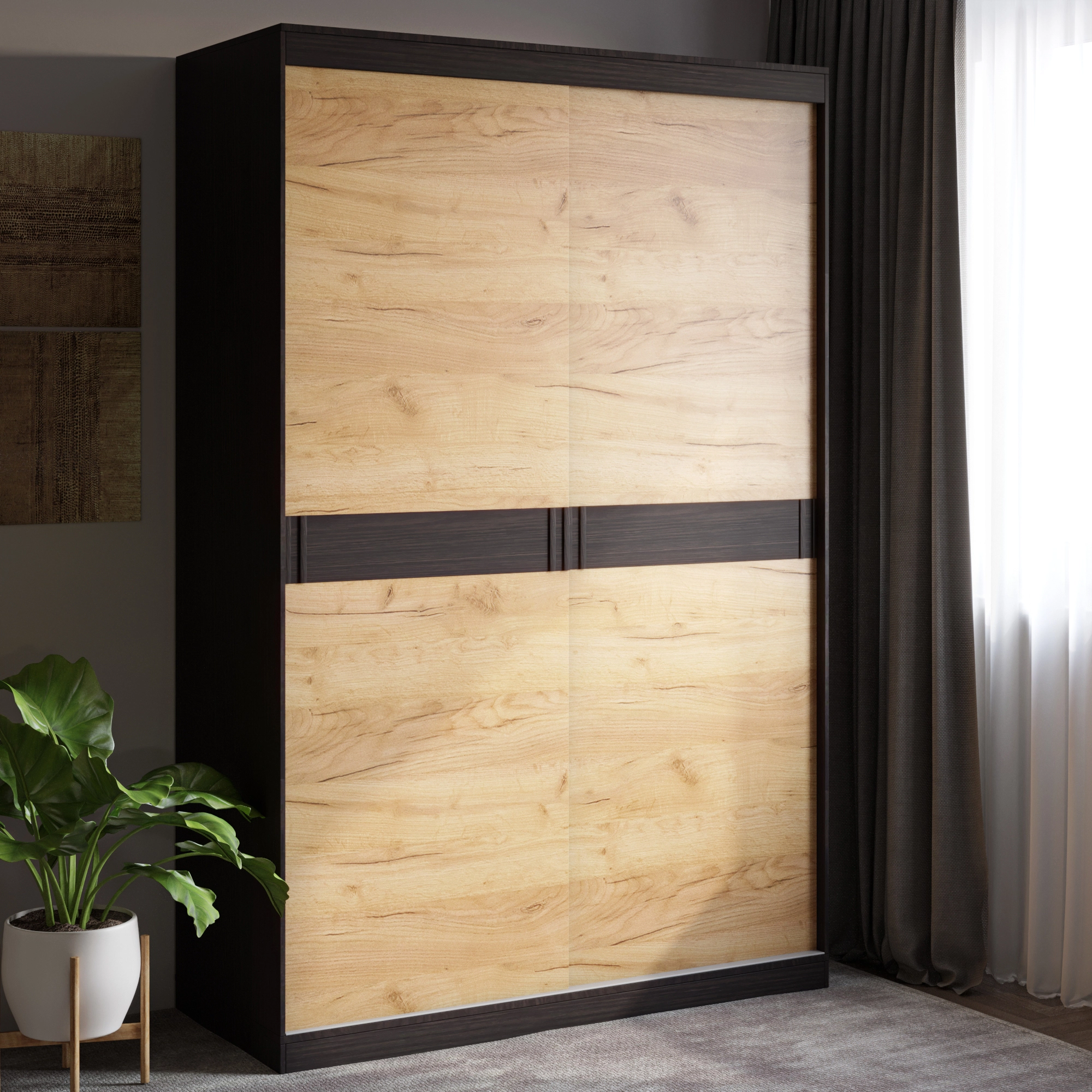 Шафа-купе Еверест Соната 1400 дводверна 140х60х217 венге темний + дуб крафт золотий (DTM-2396)
