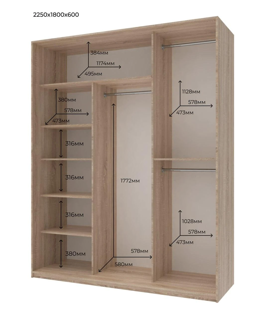 Шафа-купе трьохдверна Doros Сіті Лайт 180х60х225 см Дуб сонома (DRS-011095)