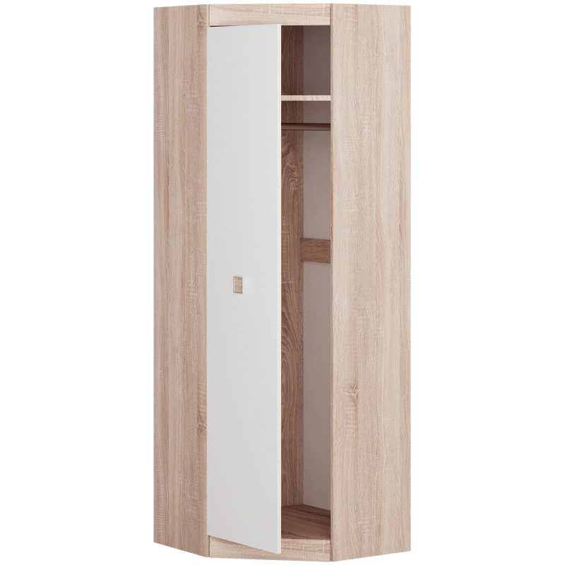 Шафа кутова Еверест Соната-700 — це ідеальне рішення для тих, хто цінує стиль та ефективність використання простору. Завдяки елегантному дизайну в кольорах дуба сонома та білого, вона легко впишеться в будь-який інтер'єр, додаючи йому сучасного вигляду. Не дозволяйте обмеженому простору стати на заваді вашій мрії про ідеальний дім — ця шафа допоможе вам раціонально організувати зберігання речей без шкоди для естетики.