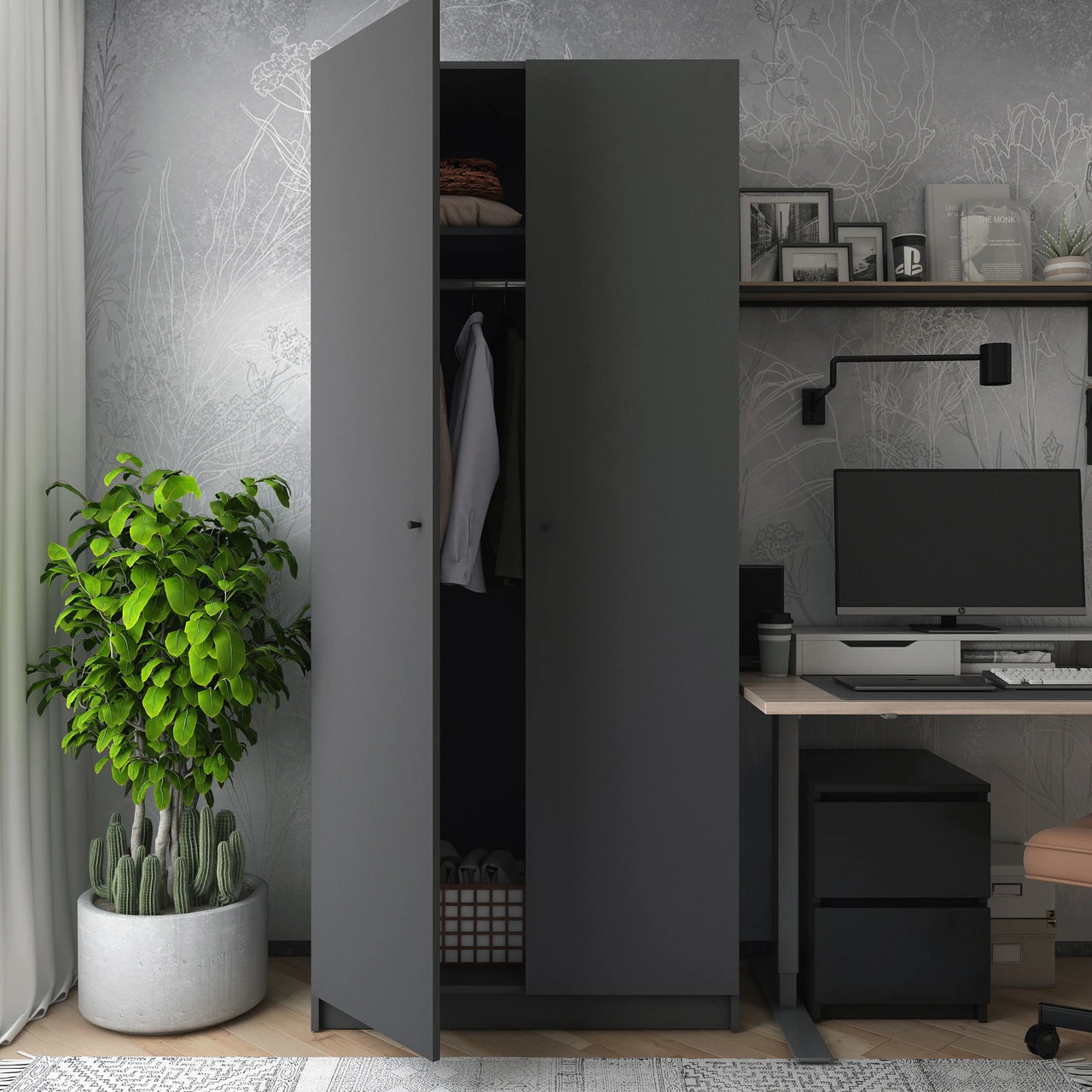 Відкрийте для себе ідеальне рішення для зберігання одягу з розпашною шафою Doros! Ця модель виготовлена з високоякісних матеріалів та має сучасний графітовий відтінок, що додає елегантності будь-якому інтер'єру. Завдяки своїм компактним розмірам, вона ідеально впишеться навіть у невеликі приміщення, забезпечуючи достатньо місця для всіх ваших речей.