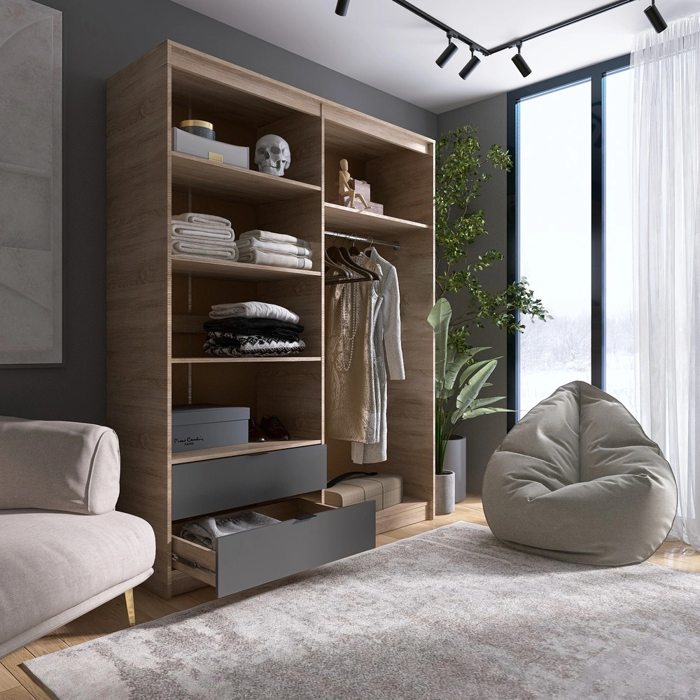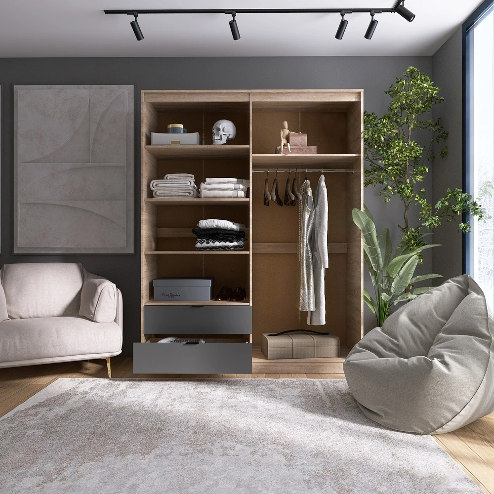 Відкрийте для себе ідеальне рішення для зберігання вашого одягу з розпашною шафою Еверест Сіті. Її сучасний дизайн в кольорах дуба сонома та графіту не тільки прикрасить ваш інтер'єр, але й стане практичним елементом вашого простору. Завдяки висувним шухлядам, ви зможете з легкістю організувати свої речі та зберігати їх в порядку. Висота, ширина та глибина шафи забезпечують достатньо місця для всіх ваших потреб.