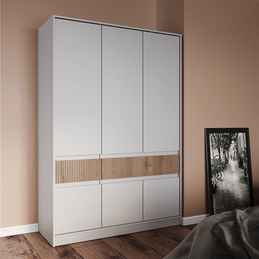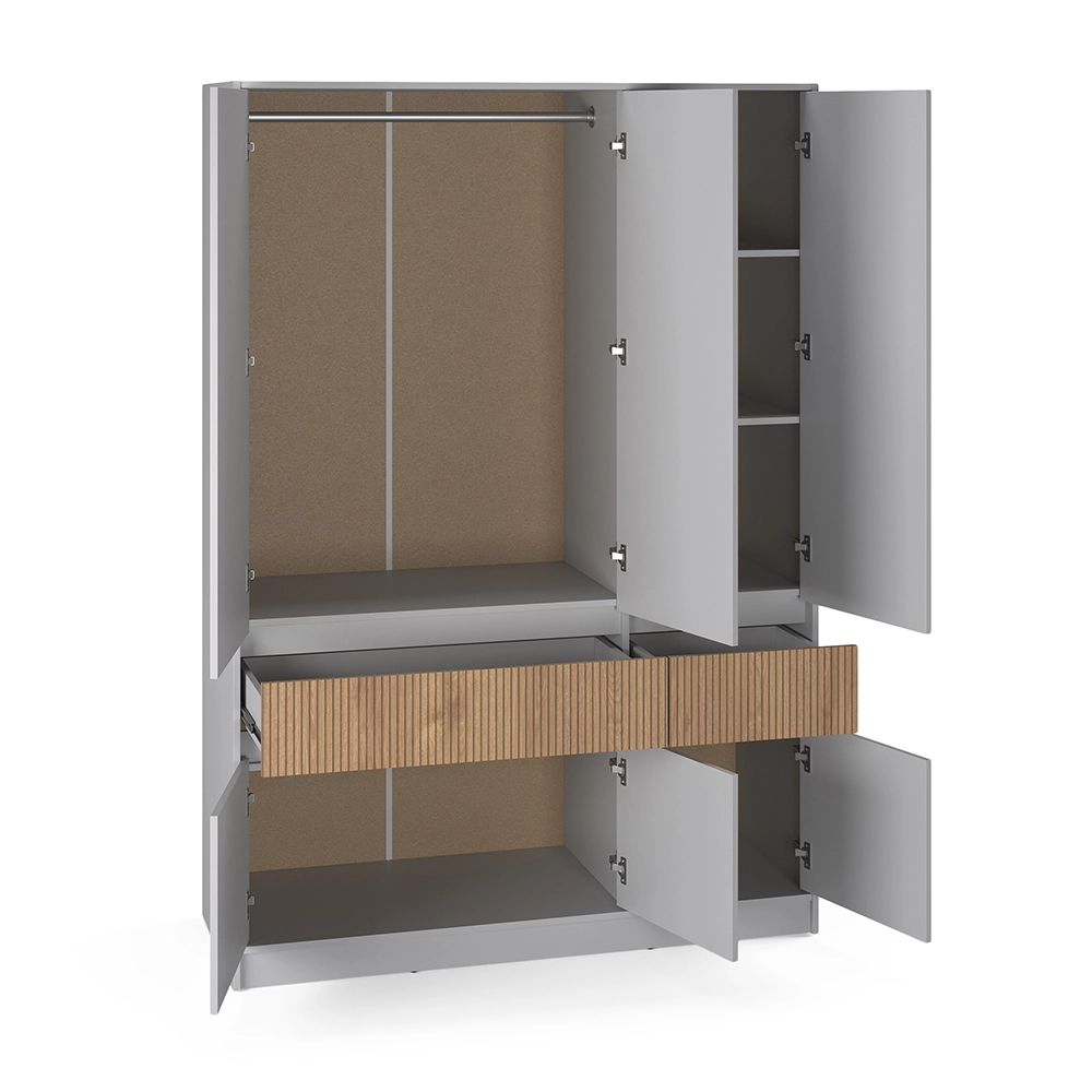 Ця шафа має оптимальні розміри 140х53х203 см, що дозволяє зручно розмістити всі ваші речі. Висувні шухляди та полиці, а також штанга для підвішування одягу забезпечують максимальну функціональність та зручність у використанні. Ви з легкістю зможете знайти потрібну річ, не витрачаючи час на пошуки.