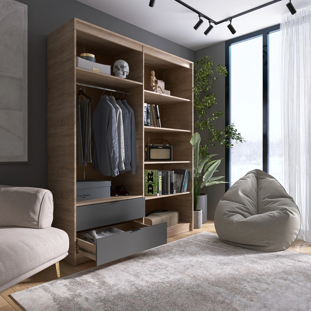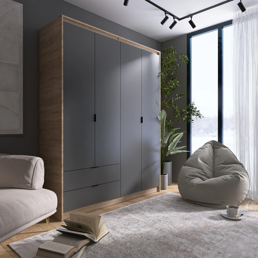 Шукаєте ідеальне рішення для зберігання вашого одягу? Шафа розпашна Еверест Сіті-1600 стане чудовим вибором для будь-якої кімнати. Завдяки своїм висувним шухлядам, штанзі та полицям, вона забезпечує зручний доступ до ваших речей і допомагає підтримувати порядок. Елегантне поєднання дуба сонома та графіту підкреслить сучасний стиль вашого інтер’єру.