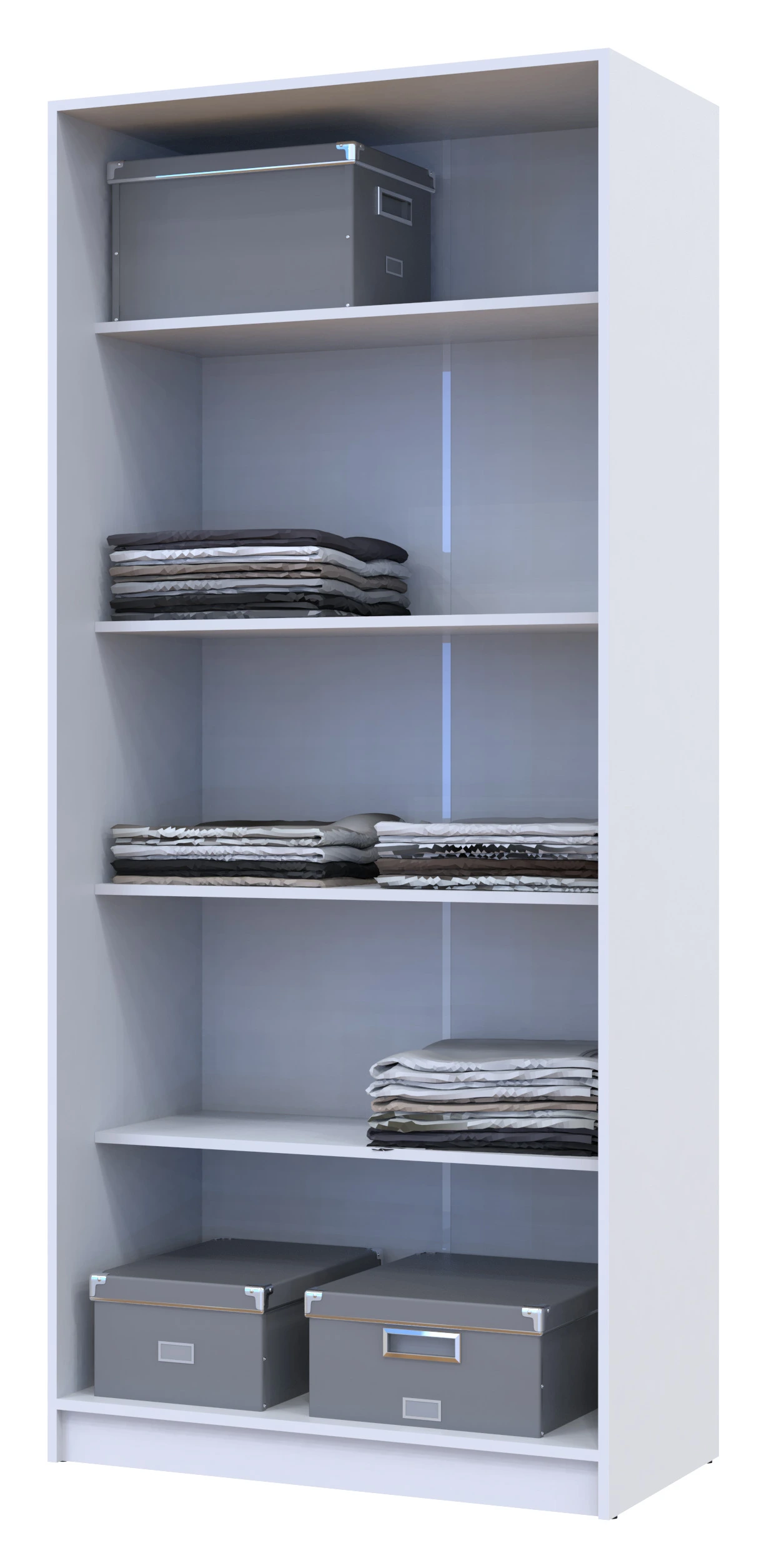 Міцний корпус виготовлений з ламінованої ДСП від перевіреного виробника Swiss Krono, що гарантує довговічність та надійність у щоденному використанні. Шафа оснащена чотирма зручними полицями, які дозволяють ефективно організувати зберігання одягу, постільної білизни та інших речей.