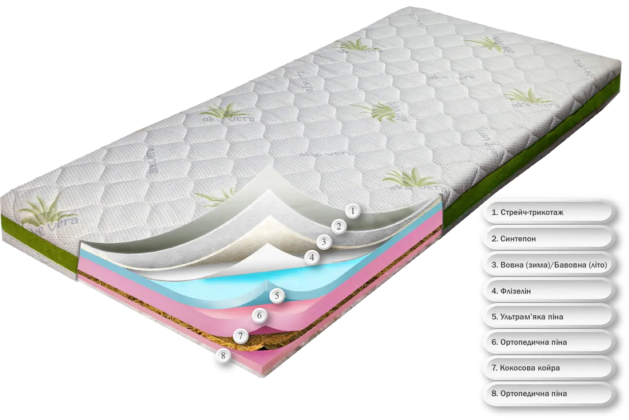 Сейв плюс (алое віра) 140х200. З кокосом. Зима Літо. Матрац дитячий підлітковий від 3х років.