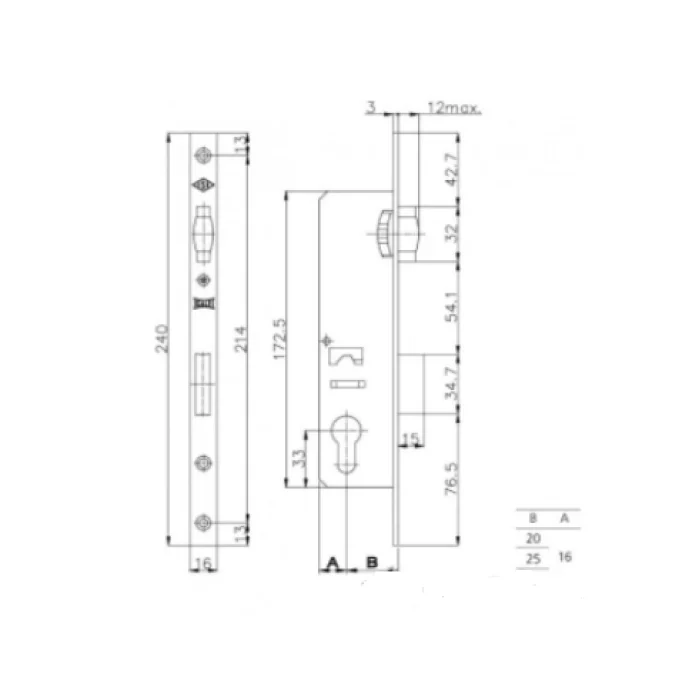 - Габарити лицьової частини замка 16х240 мм