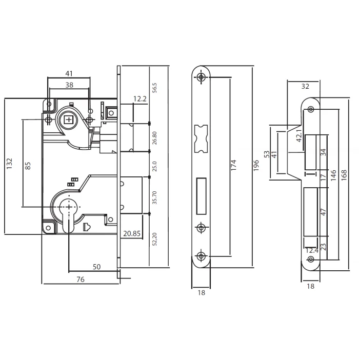 - Розміри 196/85/50 мм — стандартне рішення для більшості дверей.