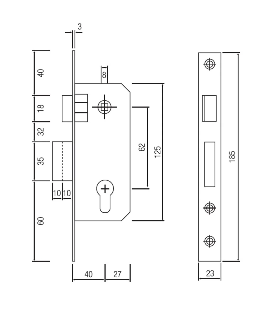 SIBA 10037/D призначений для встановлення у дерев’яні, металеві чи МДФ двері, де потрібна базова система замикання з одним ригелем. Такий тип замка часто застосовується у внутрішніх приміщеннях — офісах, квартирах, коморах, господарських кімнатах. Конструкція гарантує надійне замикання без заїдань і легко інтегрується у стандартні дверні полотна.