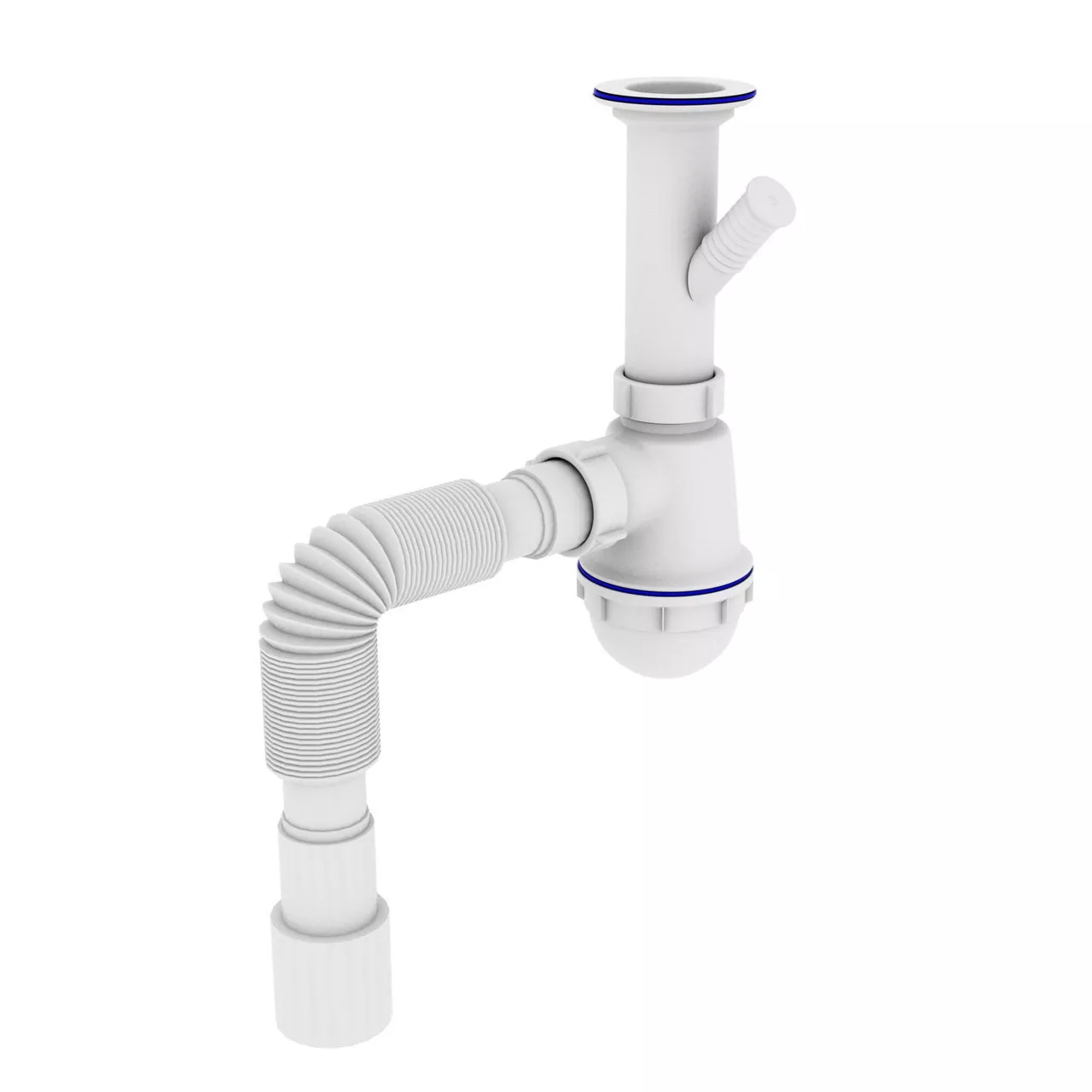 Сифон для кухонної мийки Kronoplast М-1550 1 1/2* 40 зі збільшеним корпусом і відведенням до прально