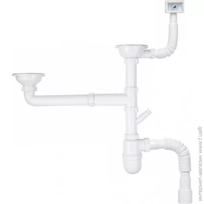 Сифон для кухонної мийки Kronoplast М2550-Е з відведенням, подвійний, симетричний та переливом Ø40х
