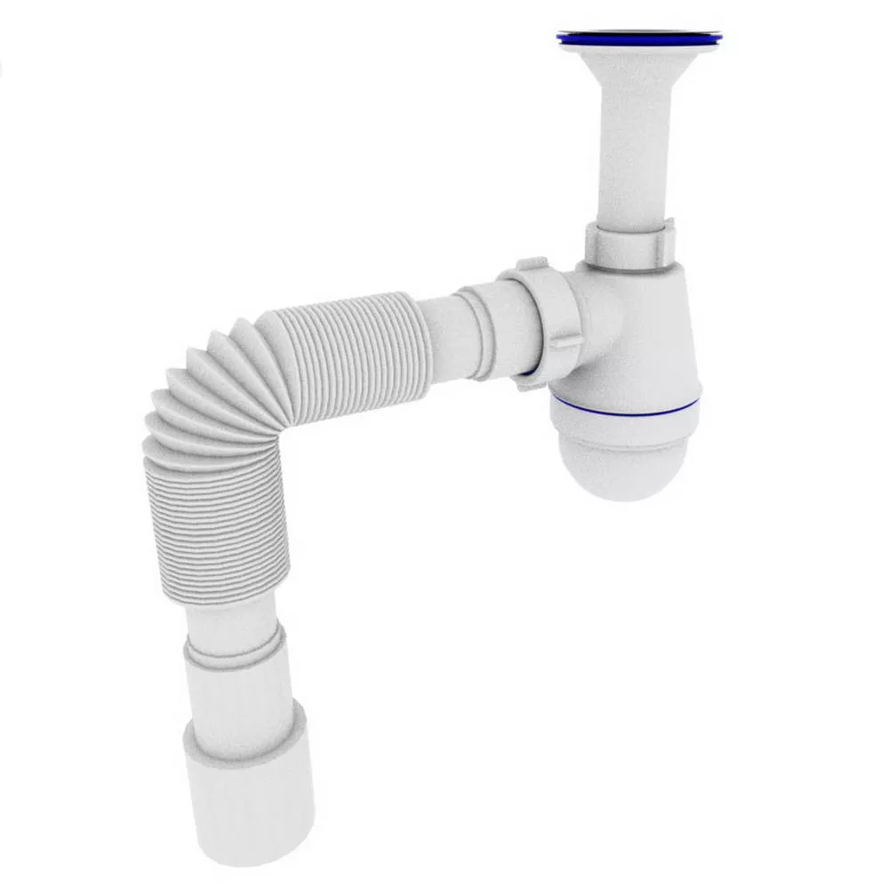 Сифон для умивальника Kronoplast Т-1050 1 1/4 з литим випуском і гнучкою трубою Ø40х40/50 (SТ1200004