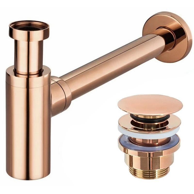 сифон для умивальника Rea універсальний, рожеве золото з донним клапаном click-clack (REA-A8541)