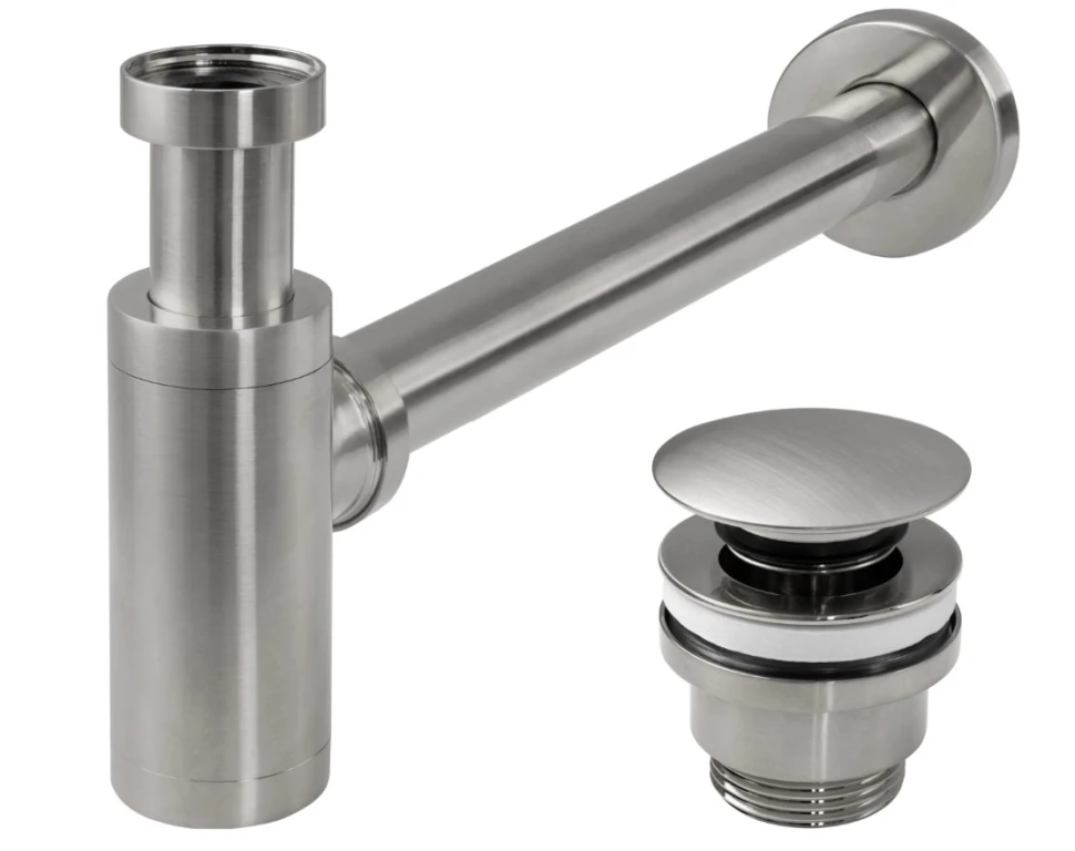 сифон для умивальника Rea з донним клапаном, нікель (REA-A4400)