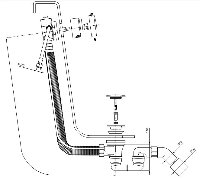 сифон для ванни з переливом Omnires CGS chrome (TK122-PLUS-3.01+64-SCR)
