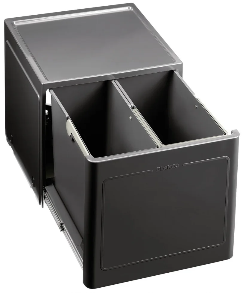 Система сортування відходів BLANCOSELECT BOTTON PRO 45 (517468) AUTOMATIC. Легкий монтаж, міцна конструкція, комфорт в експлуатації. щільно прилегла кришка перешкоджає поширенню неприємних запахів у приміщенні. Кришку можна використовувати як додаткову полицю для господарського приладдя.