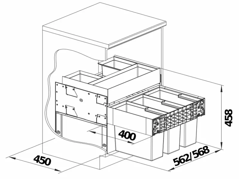Високоякісна система зберігання чудово доповнює сміттєву систему.