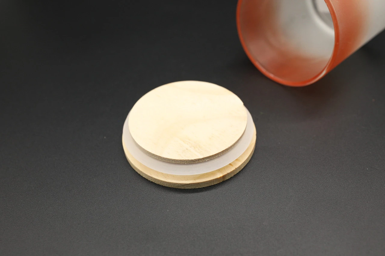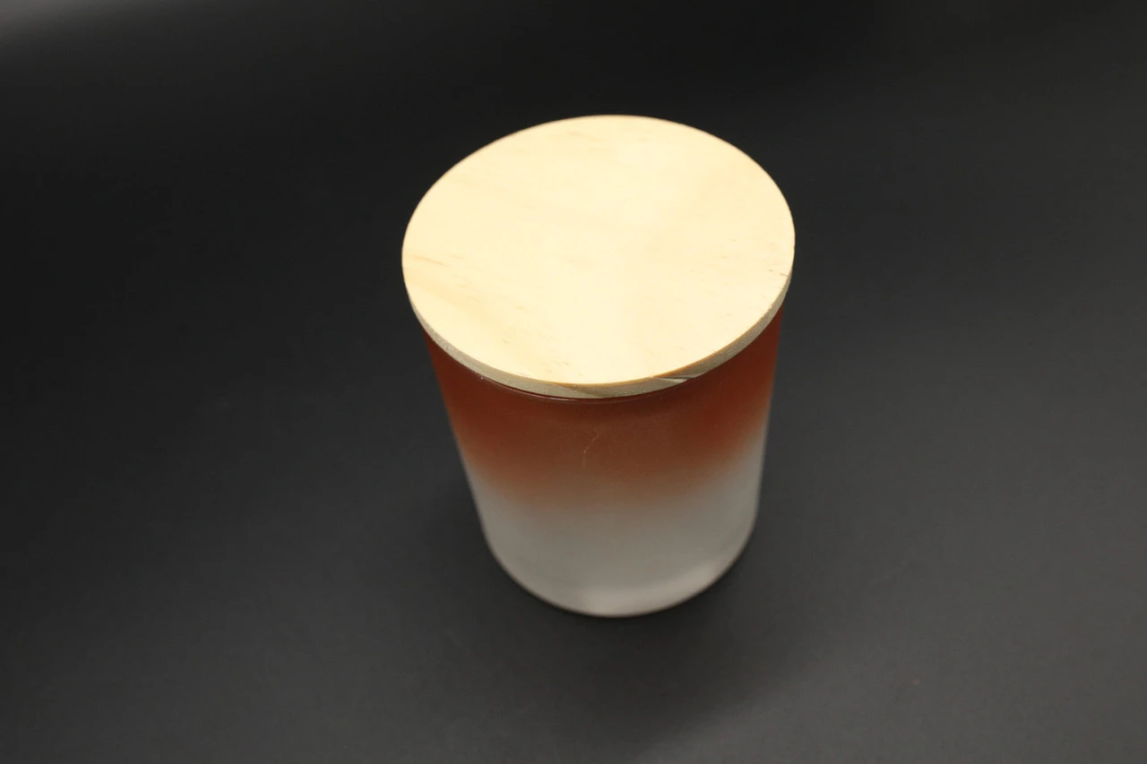 Скляна банка для свічок з дерев'яною кришкою, 82х71мм, Колір "оранжевий", 150 мл