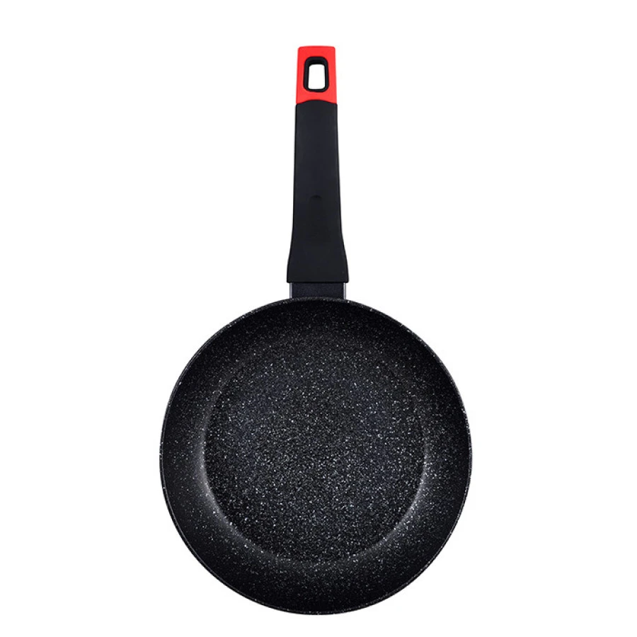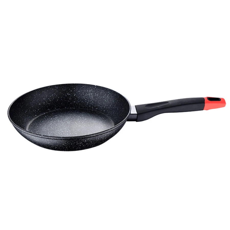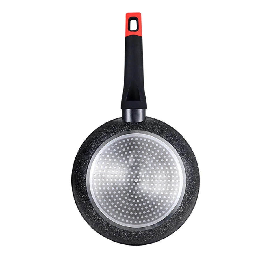 Сковорода з колекції Chroma бренду Bergner. Завдяки своїм розмірам - 20 см у діаметрі та 4,5 см у висоту - вона ідеально підходить для приготування великої кількості індивідуальних рецептів або для двох осіб, дивуючи свою сім'ю та друзів широким розмаїттям страв. Сковорода виготовлена з кованого алюмінію, високоякісного і стійкого матеріалу, який сприяє швидкому і рівномірному розподілу тепла, уникаючи гарячих точок і, отже, заощаджуючи велику кількість енергії. Крім того, цей матеріал забезпечує сковороді дуже хороші характеристики легкості, збереження тепла при високих температурах і стійкості до ризиків корозії, ударів і подряпин. Внутрішнє антипригарне покриття Marble+ забезпечує більш рівномірне розподілення їжі, запобігаючи прилипанню їжі до поверхні та полегшуючи очищення сковорідки. Крім того, це покриття надзвичайно міцне та стійке до подряпин. Сковорода має точкове індукційне дно, що робить її придатною для всіх типів плит: керамічних, електричних, галогенних, газових та індукційних. Дизайн сковороди з чорним зовнішнім корпусом і білими крапками всередині ідеально підходить для будь-якого типу кухні. Крім того, вона має ергономічну чорно-червону ручку з м'яким на дотик покриттям, яке покращить ваш спосіб приготування їжі та захистить вас від опіків під час роботи з сковородою. Всі ці особливості роблять її ідеальною для всіх кухарів, від початківців до найдосвідченіших. Для подовження терміну служби рекомендується ручне миття.