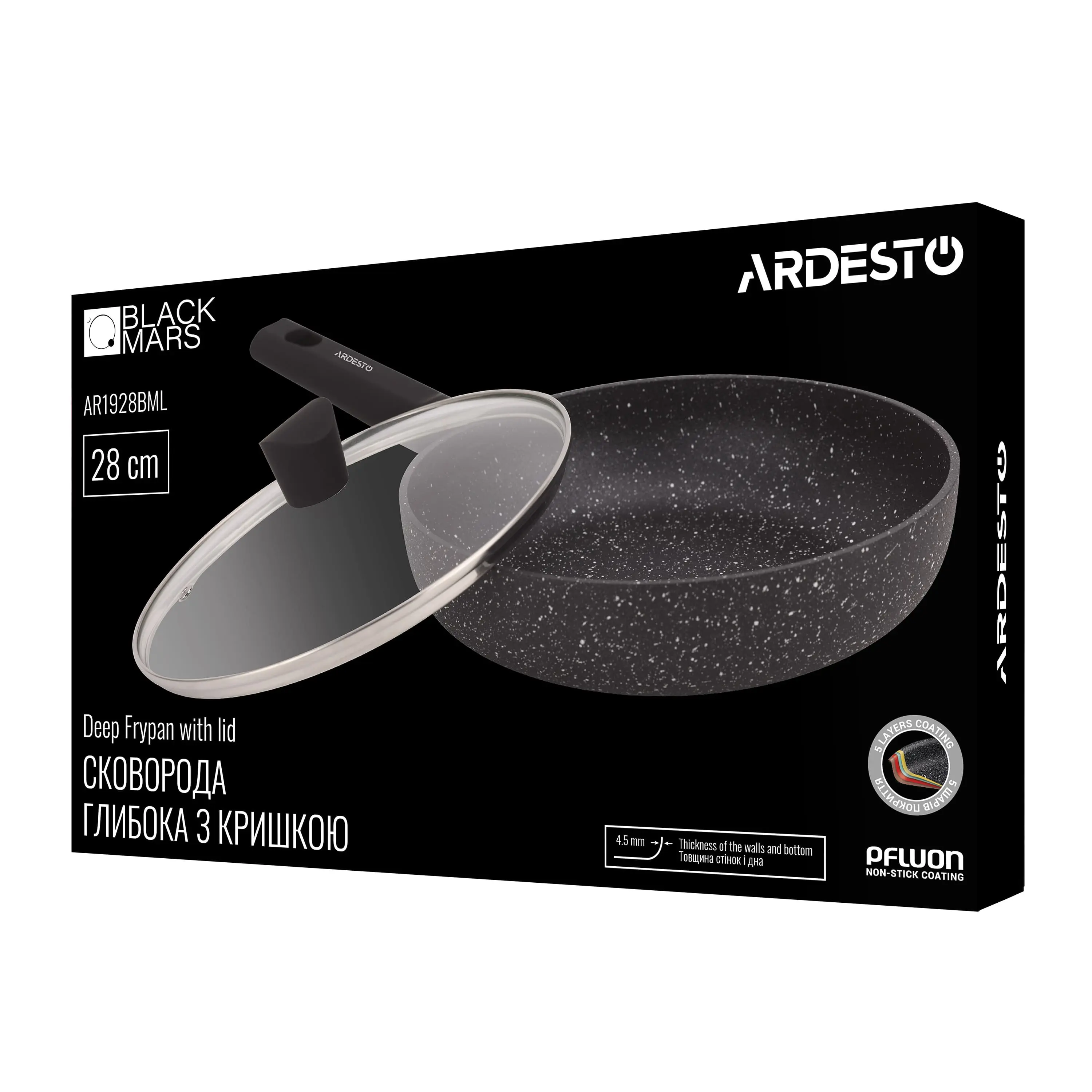 Сковорода глибока з кришкою Ardesto Black Mars Alcor, 28см, алюміній, чорний